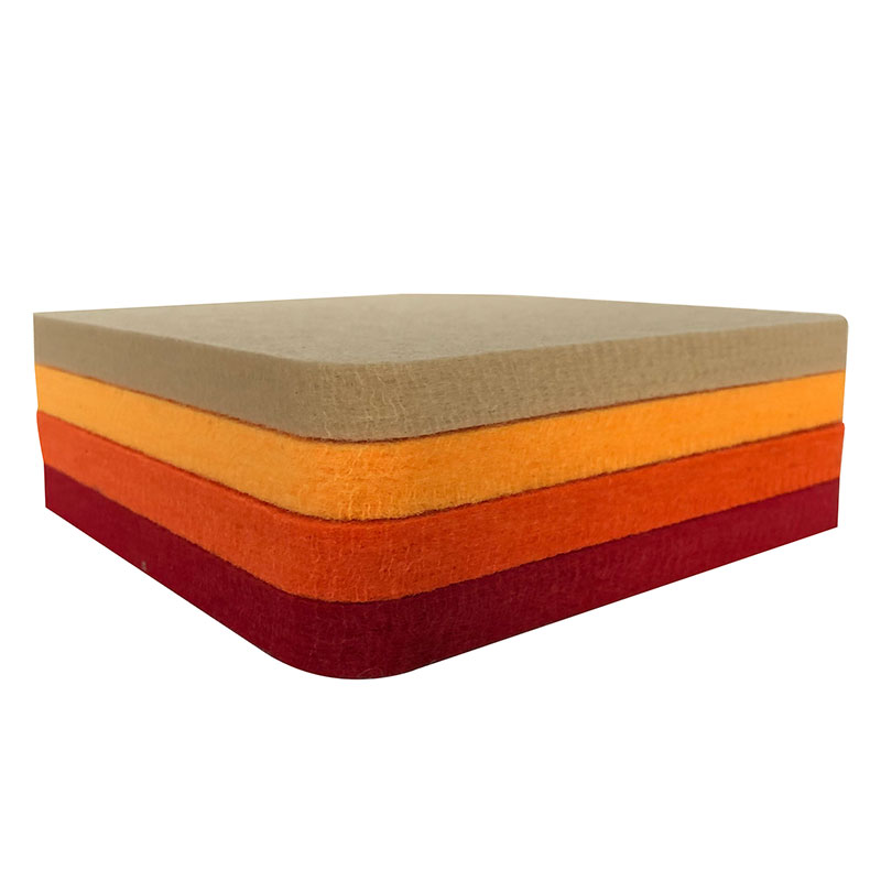 แผงอะคูสติกใยโพลีเอสเตอร์ทำจากโพลีเอสเตอร์ 100% โดยกระบวนการเจาะด้วยเข็ม กระบวนการผลิตมีความสมบูรณ์ทางกายภาพและเป็นมิตรกับสิ่งแวดล้อม ไม่มีน้ำเสีย การปล่อยมลพิษ ของเสีย ไม่มีกาว ลักษณะเป็นรูพรุนของแผงอคูสติก ทำให้เสียงดูดซับ & เป็นฉนวนความร้อน ด้วยคุณสมบัติปลอดสารพิษ ไม่แพ้ ไม่ระคายเคือง และไม่มีสารยึดเกาะฟอร์มาลดีไฮด์ และมี NRC สูง: 0.85
